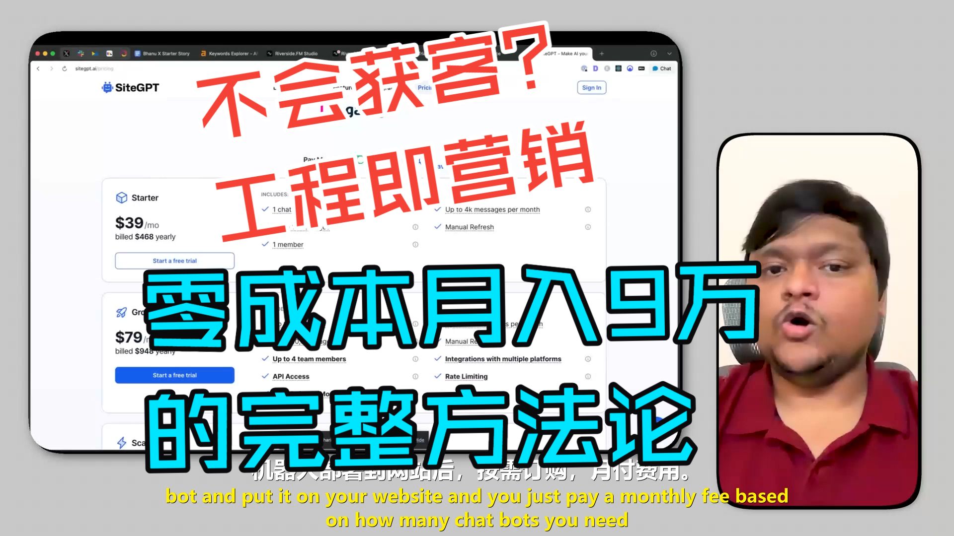 班努的做法是:开发了近50款与SiteGPT相关的免费工具,这些工具解决用户的小问题,同时将他们引导到主产品。