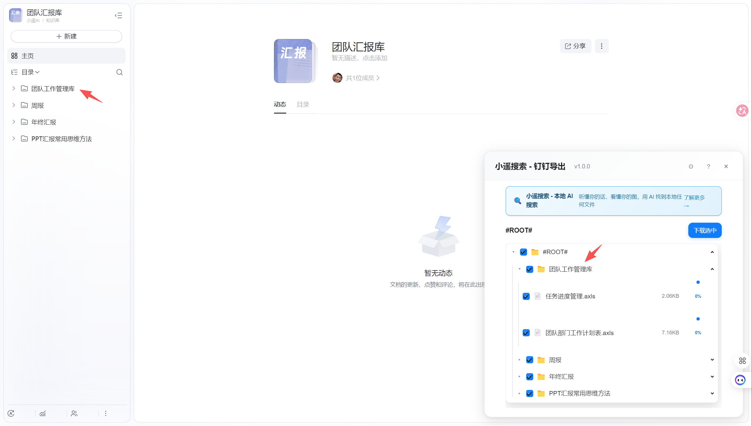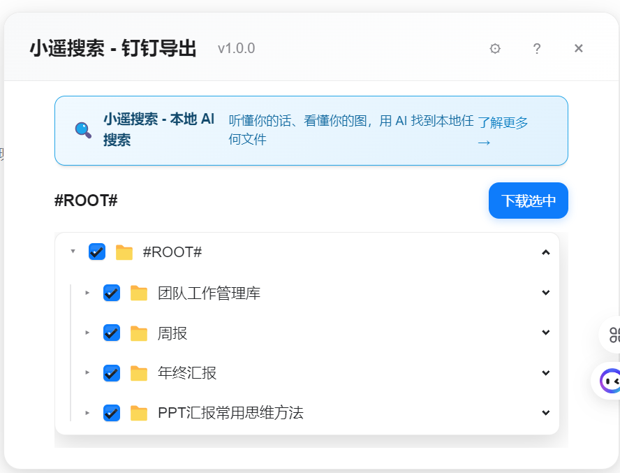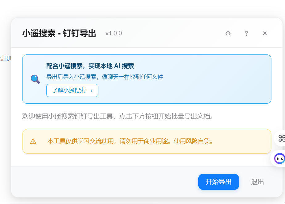 所以问题变成了:如何高效地把钉钉文档导出到本地,然后配合小遥搜索实现AI搜索?