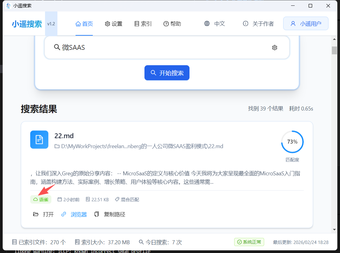 🎨 搜索结果显示"语雀"标签