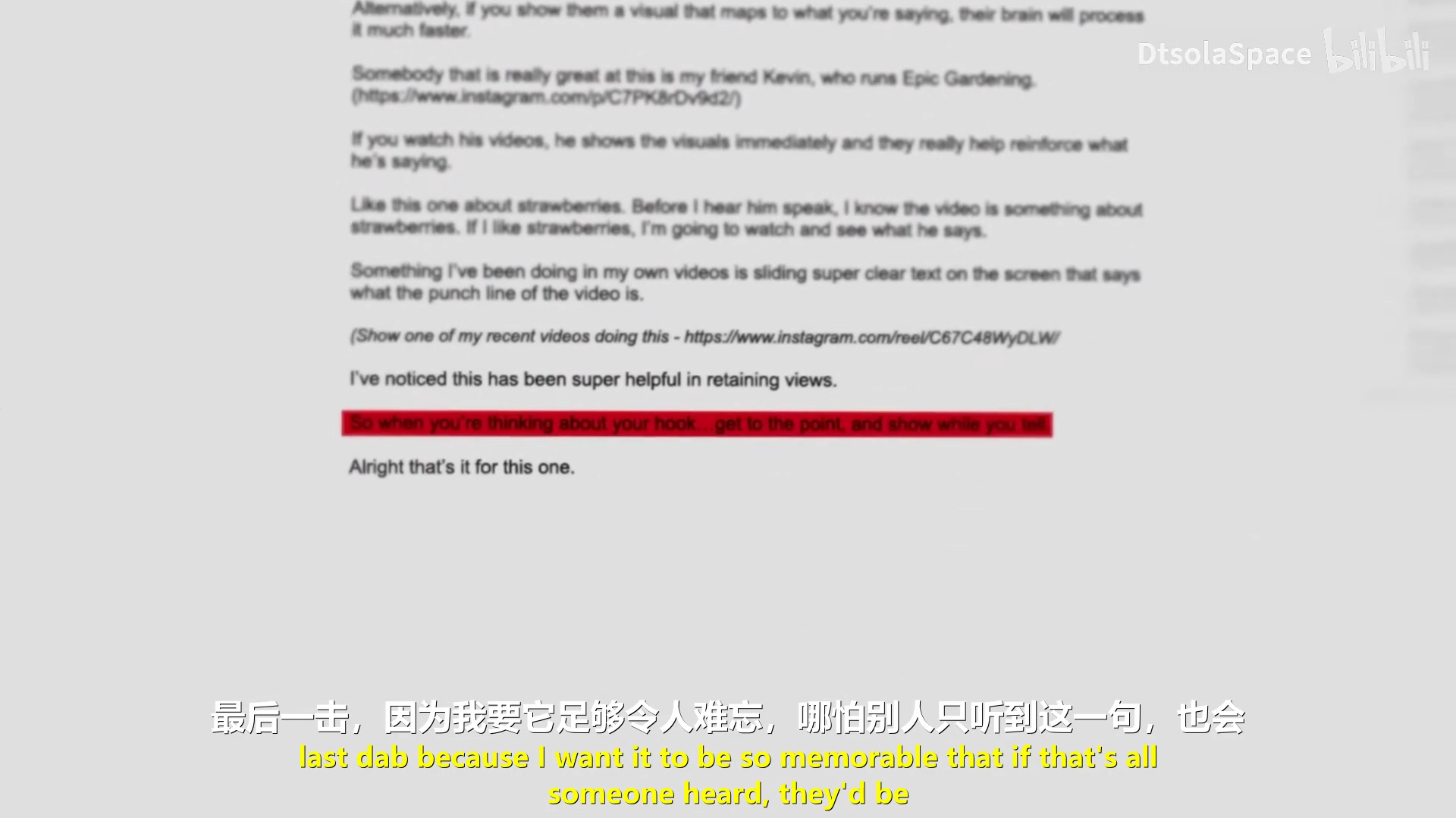 人眼的感知速度比听觉更快。最好的开头是在说话的同时展示相关的视觉内容。比如Epic Gardening的Kevin,在谈论草莓种植时,第一时间就展示了鲜红的草莓画面。